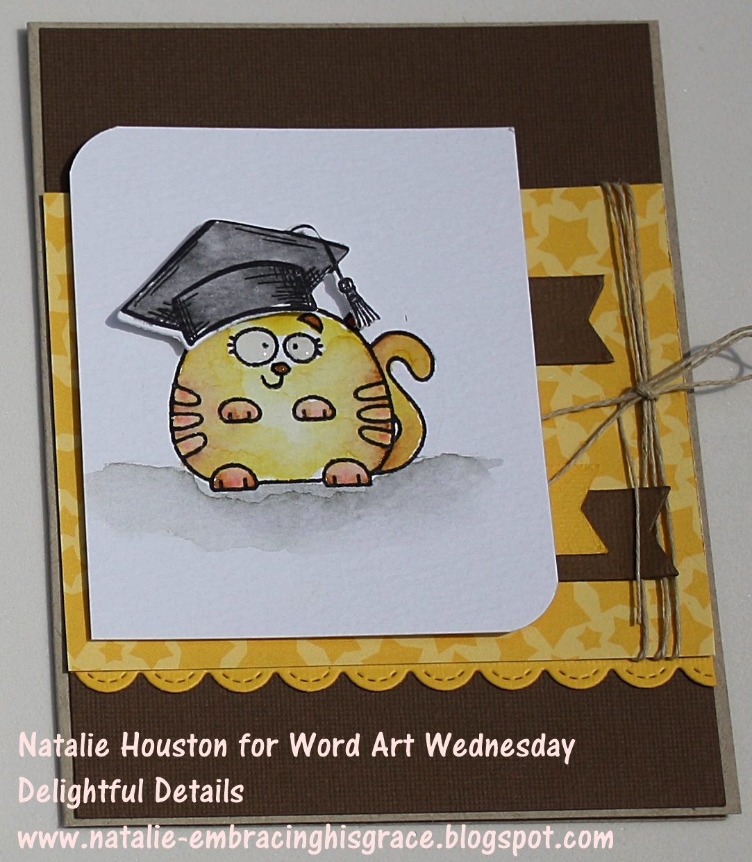 I water colored the image after stamping onto the Ranger Water color paper and I used Distress Markers, ink pads and waterbrush to color. The graduation cap is a stamp and die from Stampers Anonymous called "Crazy Things", the border die is called Stitched Scallops from Lawn Fawn. This is one of the three cards we did in class last week. Just wanted to give a shout out and thanks to Paper Smooches for sponsoring us at Word Art Wednesday!