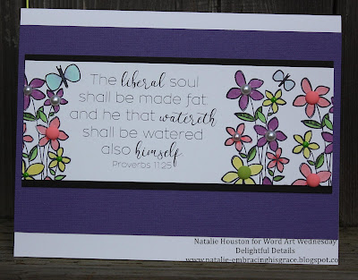 Here is my card for this weeks challenge at Word Art Wednesday. Our Scripture Art is Psalm 91:11. Psalm 91 is a beautiful reminder for us to live in the safety of God's power and His protection, He will even give His angels charge to guard us and keep us in safety as we abide in Him. Pretty incredible promise! So many wonderful benefits when we abide in Christ.